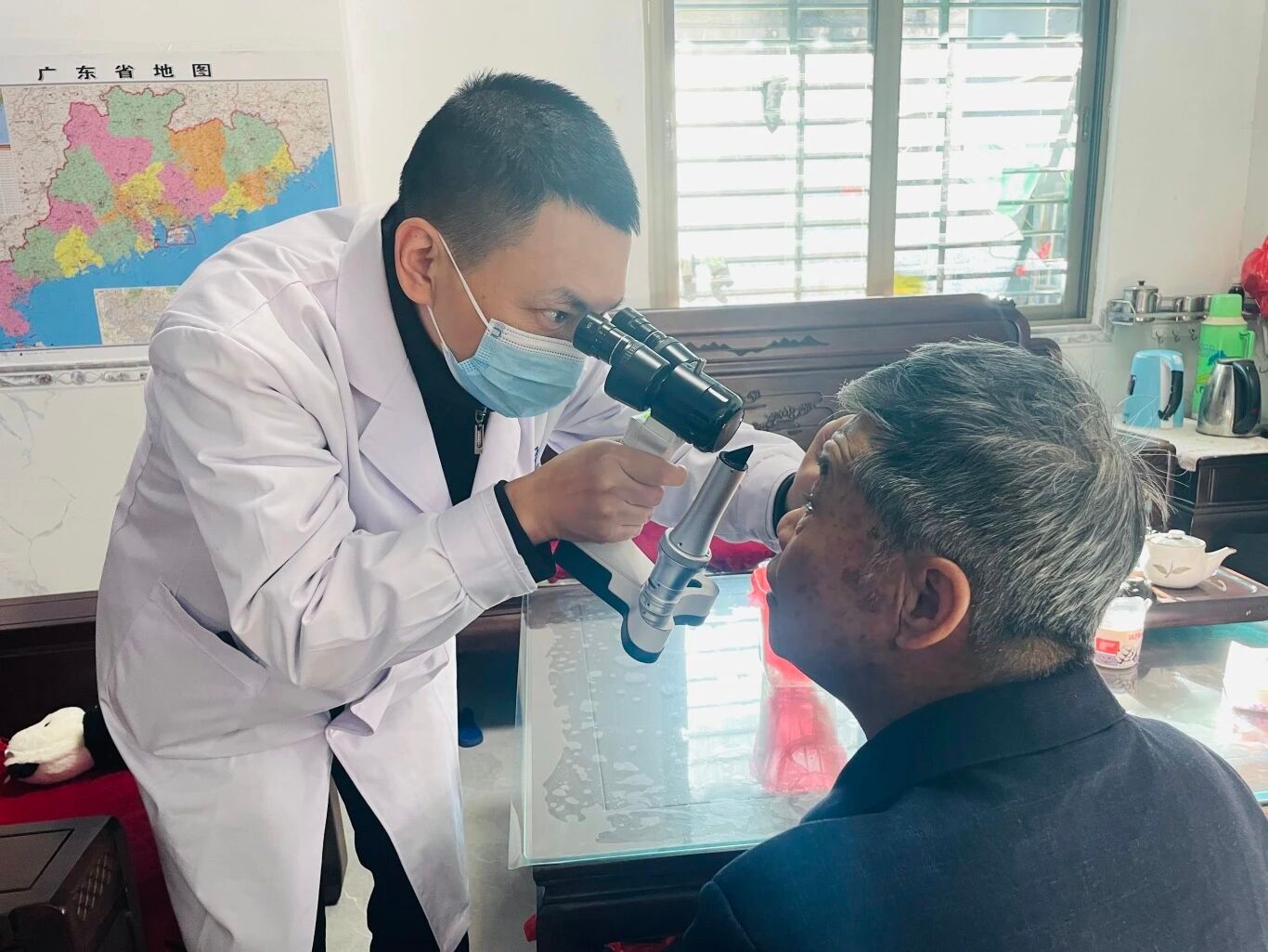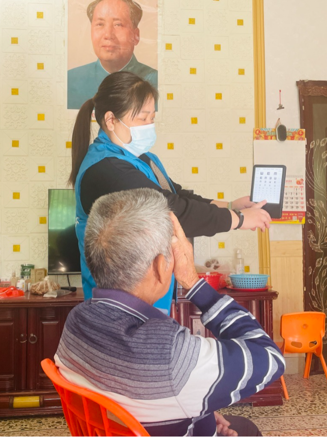 当天,我院工作人员走访了7个村寨,每到一处,工作人员都认真询问术后患者出院后眼睛的恢复情况,为术后患者进行仔细的复查,并针对术眼的恢复情况给予相应的意见,再进行眼健康科普,最后代表医院向他们送上润目眼药水和老花镜。