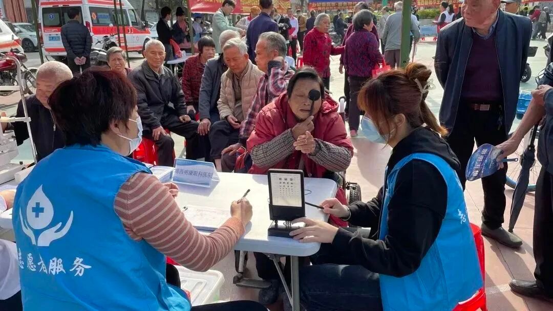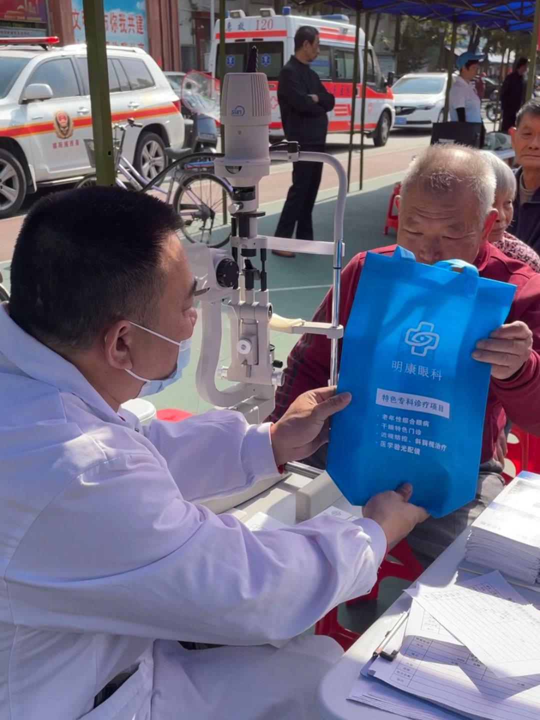 守护“睛”彩,亮眼未来。我院工作人员为老百姓筛查视力、检查眼部健康、分发眼健康知识宣传资料、赠送保健明目眼药水。