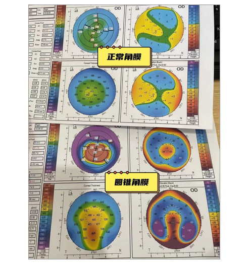 了解情况后,高稳生第一时间为这名患者进行了详细地检查,其中就包括角膜地形图,结果显示该患者双眼角膜瞳孔区均呈圆锥状前突明显,中央变薄等症状,诊断为圆锥角膜,需立即进一步治疗。