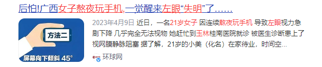 玉林一21岁女生,在家待业期间日夜不分地玩手机,某天醒来后发现左眼失明了,后被医生确诊“眼中风”。