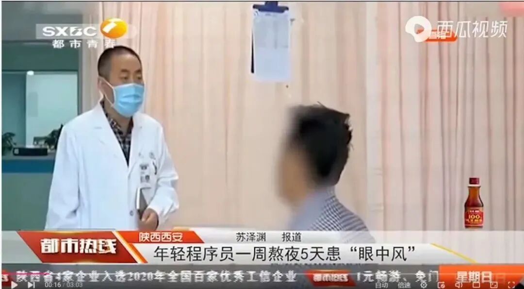 西安一31岁程序员,经常熬夜到一两点,一周能熬夜5天,后发现视力模糊,被医生确诊“眼中风”。