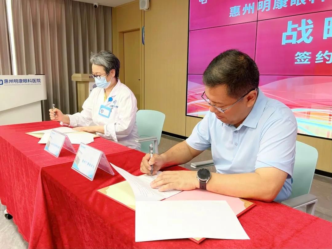 参观结束后,双方进行了签约授牌仪式,惠州明康眼科医院和惠州广播电视台正式达成战略合作。